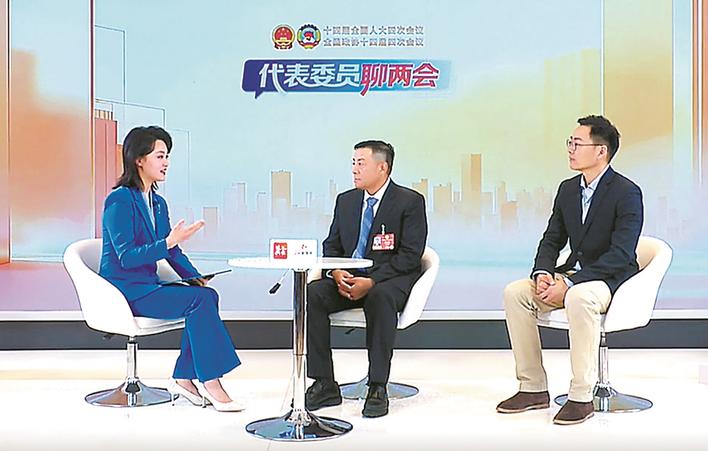 孟宪明(中)、马亮(右)做客“代表委员聊两会”演播室。