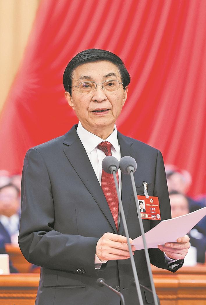 全国政协主席王沪宁主持闭幕会并讲话。 新华社记者 黄敬文 摄