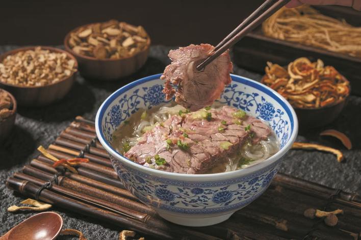 每一碗汤,都经过数小时慢火熬煮。预处理时,牛肉、牛骨经多次清洗、焯水,去除血沫与杂质;18味药食同源食材按比例搭配,提前浸泡,充分激发营养与香气。慢炖过程中,将牛骨与料包一同放入大汤锅,大火煮沸后转小火慢炖,牛肉的鲜香与本草的药香在时光中充分融合,汤汁浓稠醇厚,肉质软烂入味。出锅前最大程度保留食材本身的风味与营养,实现“鲜而不腻、药香淡雅”的口感。