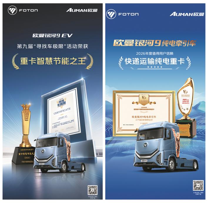 从传统能源到新能源,欧曼银河全系车型的荣誉加冕,彰显了品牌全方位的技术实力与产品竞争力。作为商用车行业的重要参与者,欧曼始终以用户需求为导向,以技术创新为引擎,在绿色物流转型的浪潮中,不仅为用户提供了“买得值、用得省、跑得稳”的运输解决方案,更以实际行动推动行业向高效、低碳、智能方向加速演进。未来,欧曼必将持续突破,以更卓越的产品与服务,赋能每一位运输人,书写商用车行业高质量发展的全新篇章。
