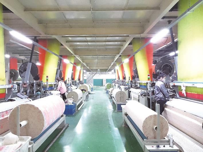河北柏立信家纺股份有限公司织造车间。