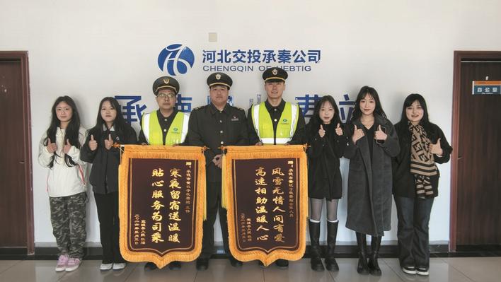 近日,河北交投承秦公司承德县收费站收到司乘人员专程送来的两面致谢锦旗,对收费站在降雪天气期间为受阻滞留司乘提供暖心服务表示诚挚感谢。汤丽丽 摄