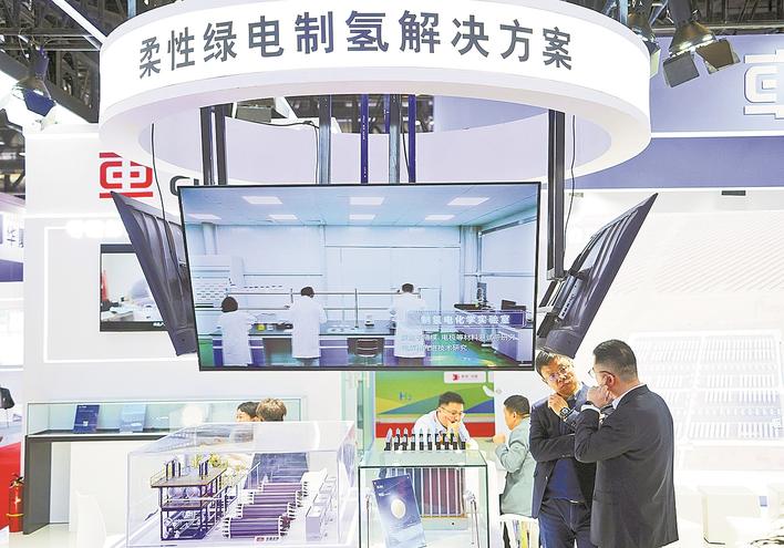 2025年3月26日,参观者在2025中国国际清洁能源博览会上了解展出的氢能源制造方案。新华社记者 潘旭 摄