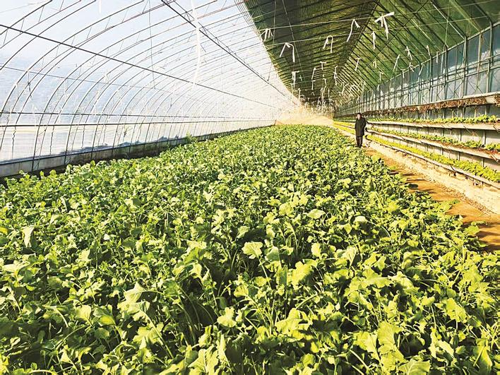 近日,霸州南孟镇特菜家庭农场种植基地温室大棚内绿意盎然,冰草、香叶、紫贝天葵等特色蔬菜长势喜人,迎来集中收获期。菜农们抢抓时节采摘、分拣、打包,一批批高品质特菜直发北京市场。图为该农场种植基地温室大棚。薛彤雨 摄