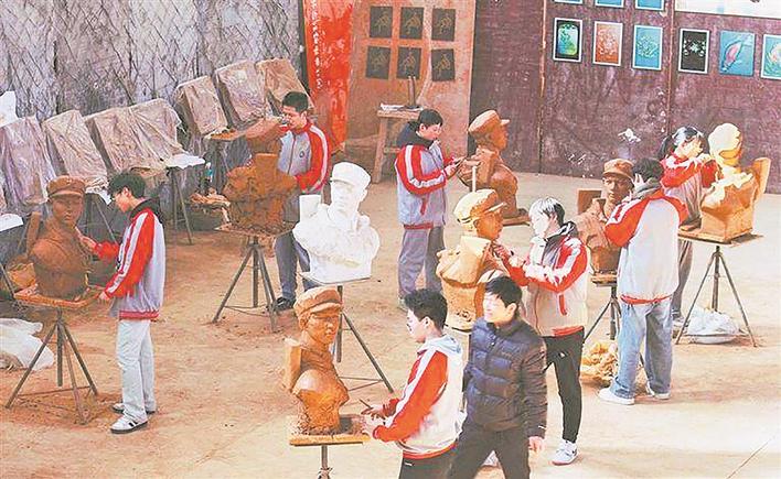 二月十五日,曲阳雕刻学校学生在上泥塑课。资料片