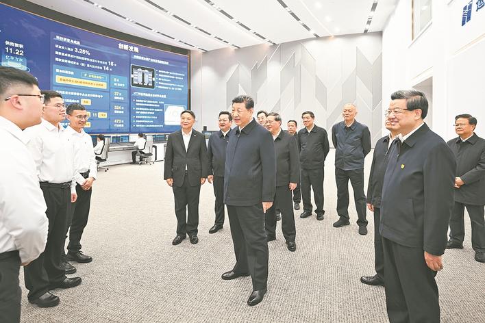 3月23日,中共中央总书记、国家主席、中央军委主席习近平在河北雄安新区考察,并主持召开深入推进雄安新区高质量建设和发展座谈会。这是23日上午,习近平在中国华能集团有限公司考察时,同企业员工亲切交流。 新华社记者 谢环驰 摄