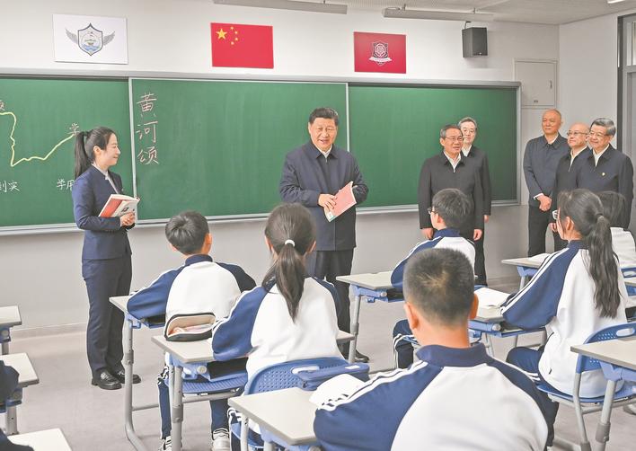 3月23日,中共中央总书记、国家主席、中央军委主席习近平在河北雄安新区考察,并主持召开深入推进雄安新区高质量建设和发展座谈会。这是23日上午,习近平在北京四中雄安校区考察时,走进教室同师生亲切交谈。 新华社记者 谢环驰 摄