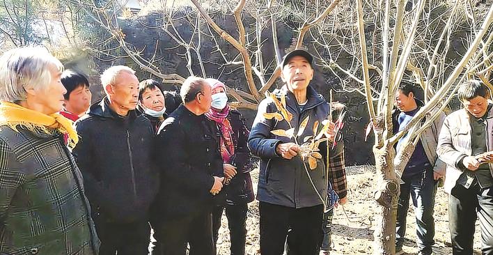 马志英在给种植板栗的果农们讲解修枝要领。