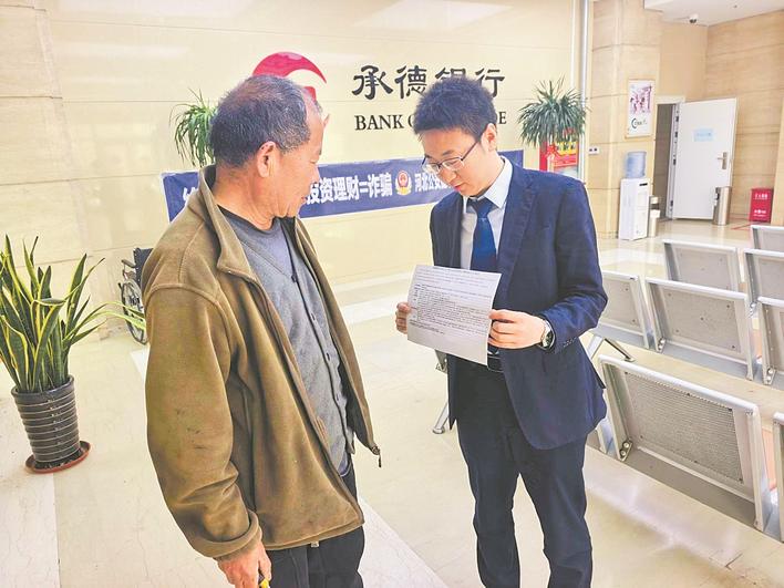 承德银行唐山路北支行在营业大厅向客户宣传明示企业贷款综合融资成本政策。李洋洋 摄