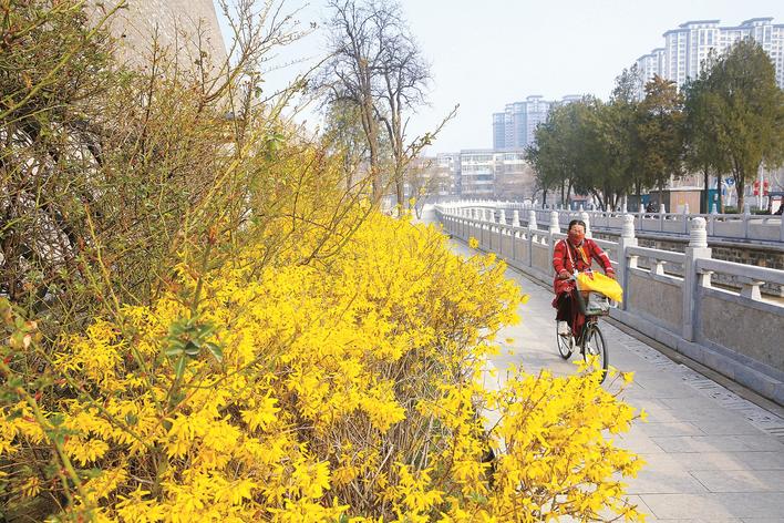 近年来,邢台市园林中心在绿化提升中优选乡土树种,科学配置乔灌草景观。眼下正是连翘盛花期,市民纷纷走进公园绿地,踏春赏景,感受太行泉城的春日生机。 记者 刘杨 通讯员 程一诺 摄