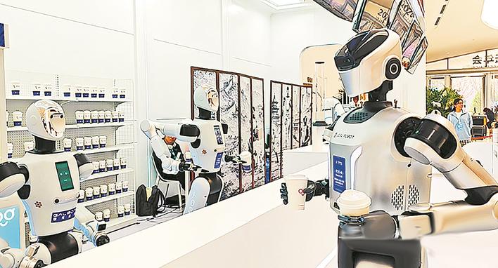 除了餐饮服务,文化艺术领域也迎来了“硅基艺术家”。在机器人餐吧不远处,“灵心乐府”机器人乐队在进行精彩演出。它们不仅能演奏钢琴,还能吹奏唢呐、葫芦丝等传统乐器。灵心巧手(北京)科技有限公司联合创始人左家平透露,目前该机器人乐队已掌握约600首曲目。他说:“当机器人的双手足够灵巧,人们甚至可以将穿针引线、包饺子等手工技艺传承给它们,用科技为文化‘存档’。”