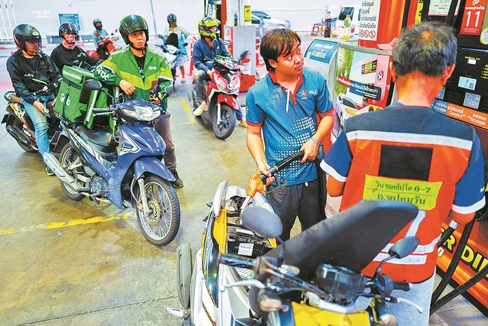 3月26日,在泰国曼谷,摩托车主在一家加油站排队等待加油。 美以伊战事发生以来,全球石油运输大动脉霍尔木兹海峡通行受阻,导致国际原油市场剧烈动荡、油气价格飙升。 新华社/路透