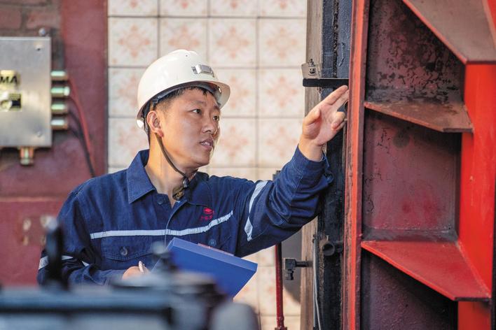 指尖轻触设备肌理,目光穿透钢铁壁垒。作为开滦集团唐山矿业公司机电科技能大师,杜伟以“零差错”为标尺,在提升系统检修现场精查隐患、细测参数,用数十年练就的过硬本领,为矿井安全高效运行保驾护航,彰显了煤矿工匠的责任与担当。图为杜伟在检修矿井提升系统。 崔奕 庞英德 摄