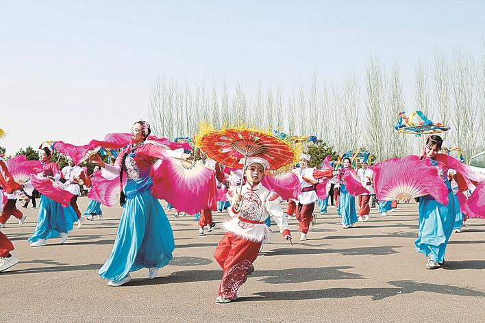 日前,赤城秧歌受邀亮相北京世园国际旅游度假区,在“京津冀蒙非遗花会展演”中,以欢快灵动之韵,展豪迈壮阔之姿,为春日京城献上一场震撼人心的民俗盛宴。图为秧歌展演现场。赤城县文化馆供图