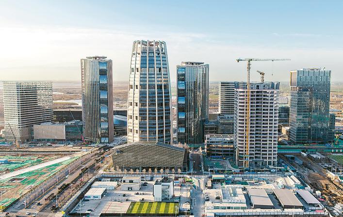 雄安新区中国中化总部(前左)和国贸中心景色。新华社发