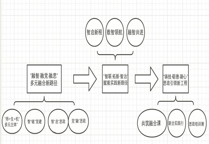 多元融合新路径:融智・融党・融思。推行“师+ 生+机”多元主体深度参与模式,优化思想政治教育互动结构。人工智能作为辅助工具,为师生提供精准反馈与专业建议,助力智能教学系统个性化指导;促进教师群体跨学科交流合作,共同探索教学方法创新,落实立德树人根本任务,推动知识传授、能力培养与价值引领有机统一,要坚守思想政治教育的根本原则与价值导向,又要勇于创新教育模式与方法,充分发挥人工智能的技术优势,为党建思政工作注入新活力。