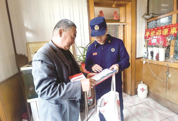 近日,沧州市消防救援支队黄骅大队联合农业农村局、各村网格员,深入乡村开展“消防宣传进农村”主题宣传活动,筑牢乡村消防安全“防火墙”。图为消防人员敲门入户精准宣传。 李金秋 摄