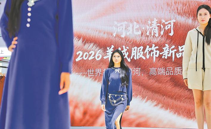 这些羊绒企业不仅带来了2026年春夏新品,还提前发布了一系列秋冬款,解锁下一季节的流行趋势。现场,20位模特身着百余套羊绒服饰轮番登场,在河北展区上演了一场别开生面的时装秀,吸引众多观众围观、拍照。
