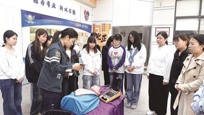 县医院急诊科医生向参训人员示范急救技巧。通讯员 田雨雪 摄