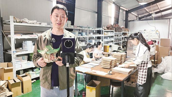 工厂一直以接订单代加工为主,产能比较稳定。但由于生产力有富余,工厂想生产销售有地方特色的产品,开拓更多销路成为摆在面前的现实问题。恰逢当地“一品一播”工作全面铺开,众乐玩具厂抓住机遇,在厂区内建起了直播间,厂长李卿亮带着工人们上镜,把一台台精美的木质机械模型搬进了镜头。如今,通过“一品一播”,众乐玩具厂开始被更多消费者看到。