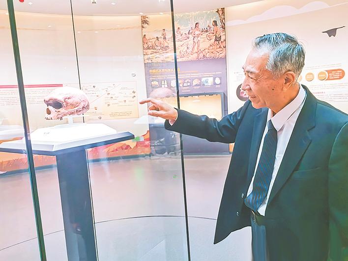 河北地质大学终身特聘教授季强介绍“龙人”头骨化石。本报记者 吴新光 摄
