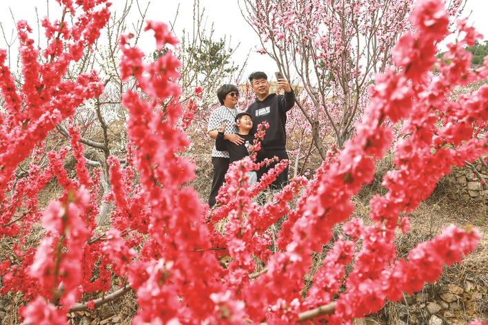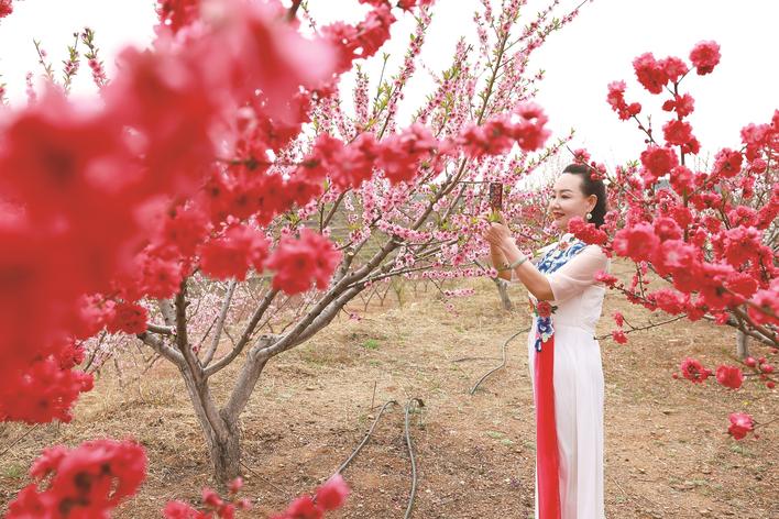 近日,迁西县新庄子镇西岭村桃花进入盛花期,层层叠叠如云似霞,春日盛景吸引众多游客前来赏花打卡。