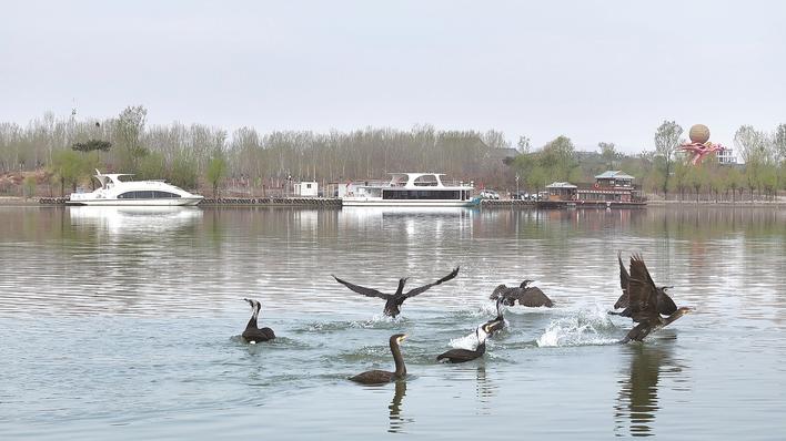 连日来,迁安市黄台湖里成群的鸬鹚悠然游弋,为春日水城增添了灵动生机。 近年来,迁安市深入实施“全域治水,清水润城”工程,累计投资130亿元对市区滦河段进行综合治理,水生态环境实现了根本改善。通讯员 吴海民 摄