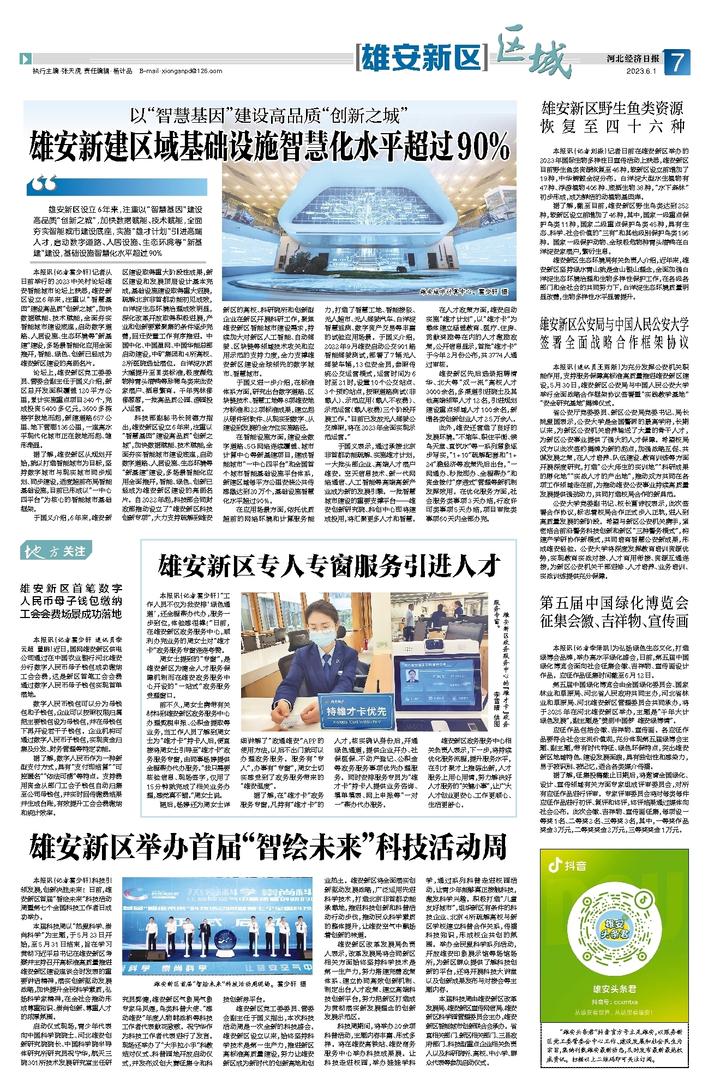 雄安新区设立6年来,注重以“智慧基因”建设高品质“创新之城”,加快数据赋能、技术赋能,全面夯实智能城市建设底座,实施“雄才计划”引进高端人才,启动数字道路、人居设施、生态环境等“新基建”建设,基础设施智慧化水平超过90%