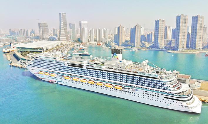 “爱达·魔都号”邮轮靠泊在青岛邮轮母港码头(4月6日摄,无人机照片)。 当日,首艘国产大型邮轮“爱达·魔都号”靠泊青岛国际邮轮母港,正式拉开爱达邮轮中国海岸巡游的序幕。据了解,“爱达·魔都号”于2024年1月1日开启商业首航,青岛航次是其首次在上海母港以外的中国港口城市亮相,将从青岛国际邮轮母港出发开启前往韩国济州和日本福冈的国际邮轮航次。 新华社记者 李紫恒 摄