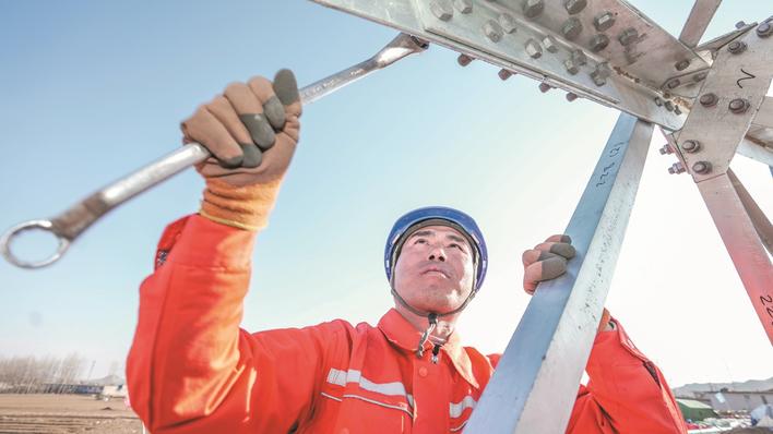 近日,承德东至滦县双回500千伏线路工程(唐山段)进入铁塔组立高峰攻坚阶段。图为国网冀北北京送变电有限公司施工人员联合唐山供电公司在进行N177号塔铁塔组立。该工程是承德至唐山第四条500千伏“绿电入唐”输电通道,线路全长176.1千米,计划6月30日投运。项目建成后,可将承德地区优质的风电、光伏资源输送至唐山,预计新增绿色电能输送能力170万千瓦。李峥 周宇翔 摄