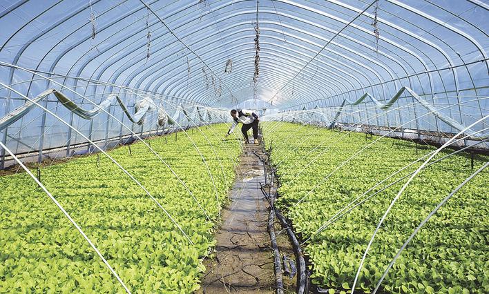 日前,察北管理区沙沟中心村智慧农业产业园区的种植大棚内,工人们正忙碌着翻土、播种、拉滴灌带、育苗,奏响春耕备播“希望曲”。图为工人在大棚里育苗。