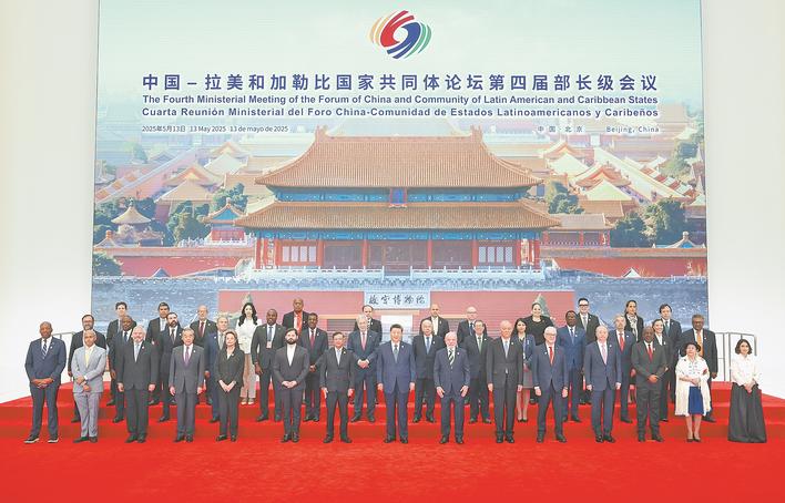5月13日上午,国家主席习近平在北京国家会议中心出席中国-拉美和加勒比国家共同体论坛第四届部长级会议开幕式并发表主旨讲话。这是习近平同与会嘉宾集体合影。新华社记者 丁海涛 摄