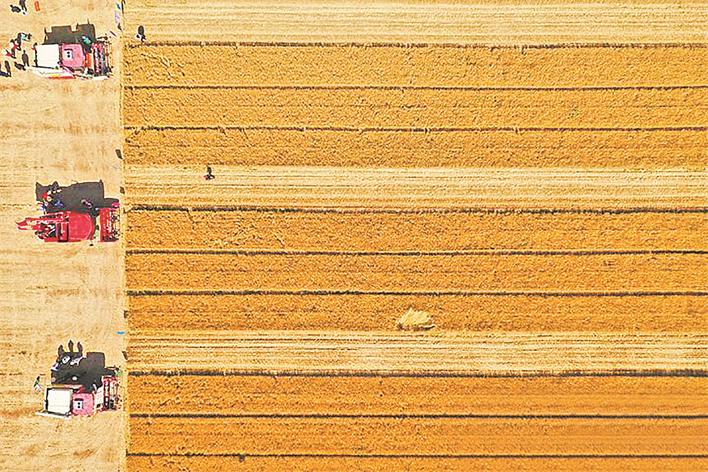 伴随着发动机轰鸣声,联合收割机一字排开,同台竞技。6月4日上午,在邯郸市大名县沙圪塔镇谢寨村的高标准农田内,2025年河北省小麦机收减损大比武观摩活动火热开场。长城网·冀云客户端记者 韩晓寒 摄