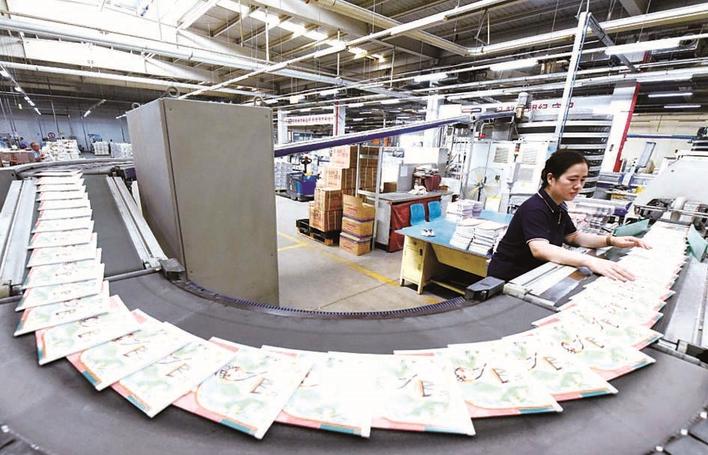 8月12日,在河北新华第二印刷有限责任公司,工人在生产车间内工作。新学期临近,承接河北省中小学部分教材印刷任务的河北新华第二印刷有限责任公司,开足马力印刷新教材,确保开学前课本教材到位。李明发 摄