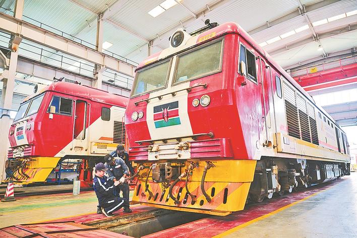 8月19日,在肯尼亚内罗毕非洲之星铁路运营有限责任公司机务检修车间,中肯铁路工作者在检查机车。 记者从非洲之星铁路运营有限责任公司获悉,截至8月16日,由中国企业承建并运营的肯尼亚蒙内铁路已实现安全运营3000天。自2017年5月31日开通以来,蒙内铁路累计运送旅客1592.8万人次,运输货物4196.3万吨。 蒙内铁路东起肯尼亚港口城市蒙巴萨,西至首都内罗毕,全长472公里。蒙内铁路是肯尼亚独立以来建设的首条铁路,也是中肯共建“一带一路”合作的标志性项目。新华社记者 杨光 摄