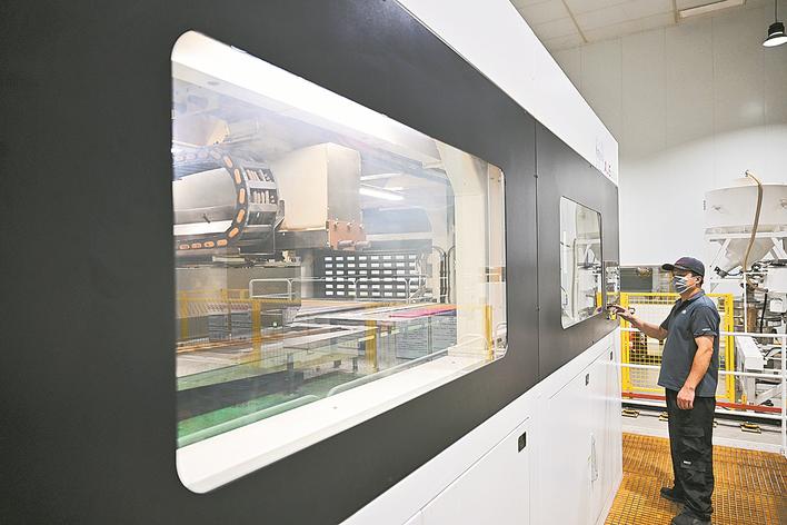 ②亚奇铸业有限公司工人在操作3D打印设备制造砂芯。