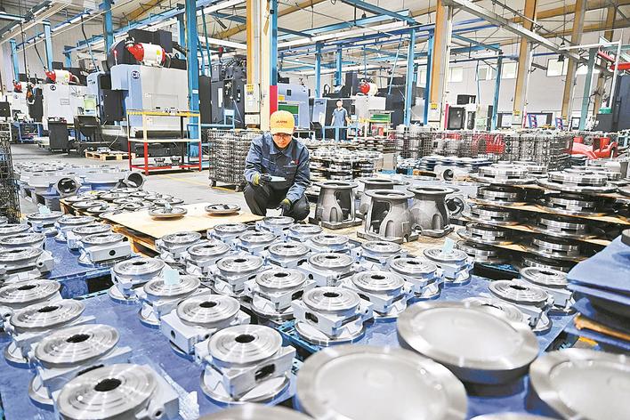 ⑨亚奇铸业有限公司工人在核对产品信息。