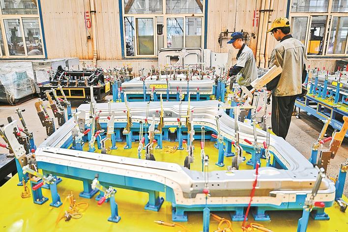 ⑤中泊防爆工具集团股份有限公司工人在生产线上工作。