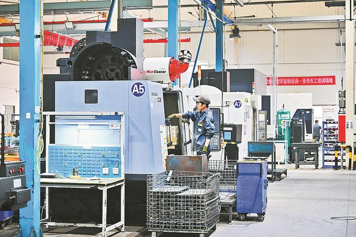⑧亚奇铸业有限公司工人在操作数控机床。