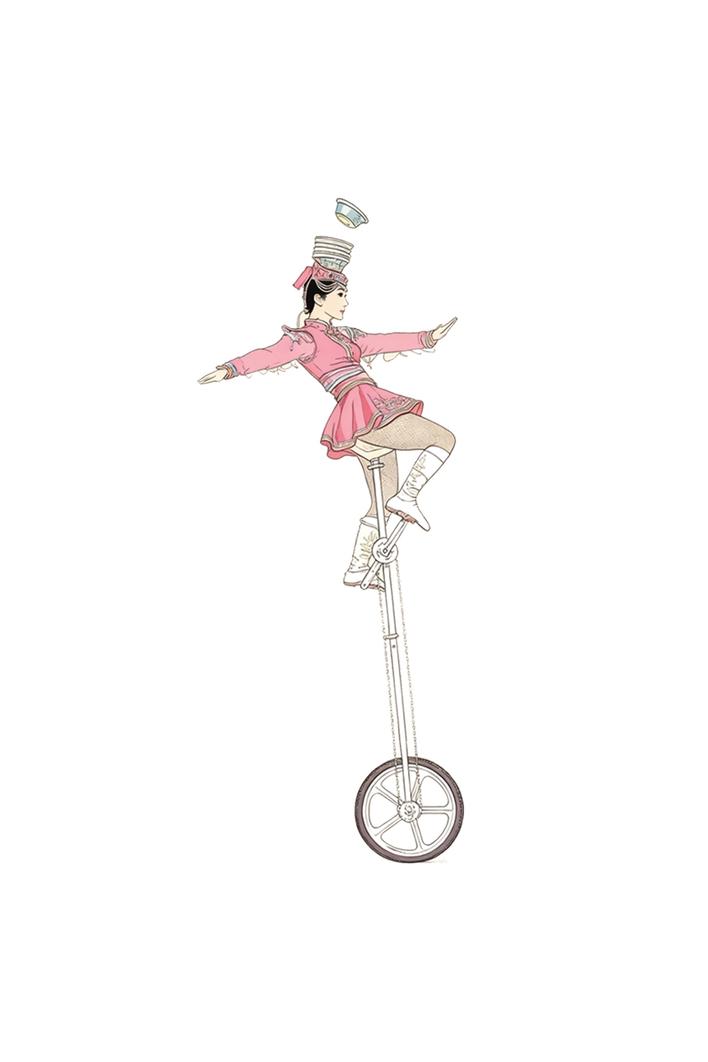 周文明介绍,杂技道具有一个演变过程:杂技本身来源于生活,以前杂技艺人随身所带的物品,既是道具,也是生活用品,比如转碟,就是过去吃饭的盘子,打一个浅浅的小眼,就成了道具。