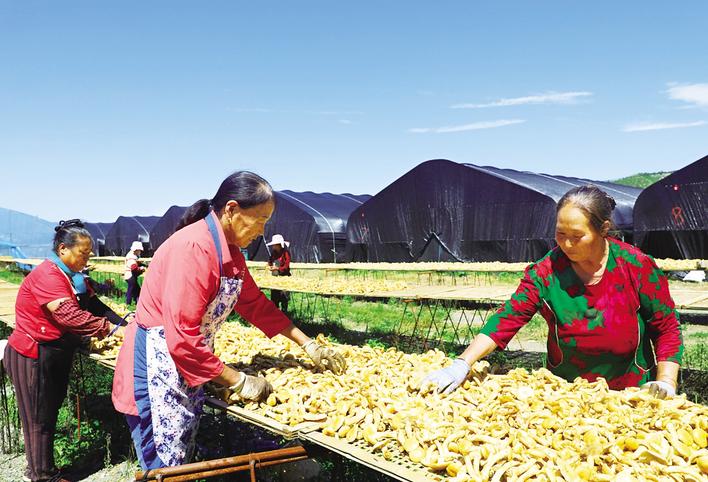 近年来,平泉市大力发展食用菌特色产业,采取“公司+合作社+农户”模式,积极引进、示范、推广新品种、新技术,建园区、树品牌、抓培训,促进食用菌产业发展。图为平北镇食用菌示范园区的农民正在晾晒滑子菇。李平文 摄