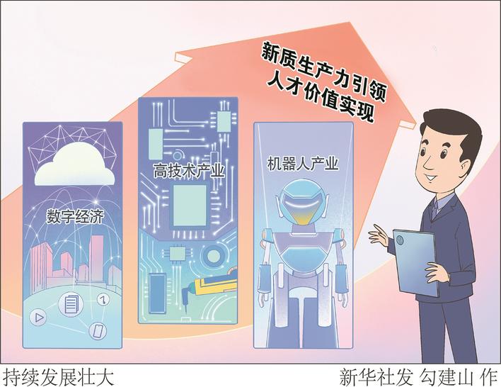 新质生产力形成发展的重要动能在于创新,而创新的源泉则体现在人才价值的充分彰显与全方位实现。高科技、高效能、高质量的鲜明特征为广大人才构建了更加宽广的价值创造空间和更为多元的价值实现渠道,科技创新成果的加速应用转化使得人才在因地制宜布局产业链与供应链过程中拥有更加丰富的价值表达形式。拓宽新质生产力引领下人才的价值实现路径,不仅是对人才综合素质和技能水平新变化的有效呼应,也是进一步发挥人才能动性、创造力的题中应有之义。