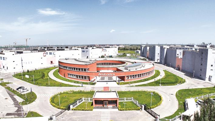 张北县小二台镇有一条数据街,沿着街道行驶不远,可以看到标志性的灰色与橘色建筑物,这是阿里数据港张北数据中心。