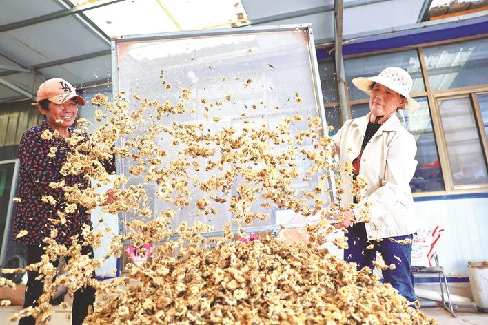 据农场负责人介绍,今年是首次试种北京菊,长势良好,不仅比普通农作物更易管理,收益也更高,亩产收益约达3000元。此外,农场还种植了60多亩金银花等中草药,逐步形成从种植、采摘到加工、销售为一体的完整产业链。