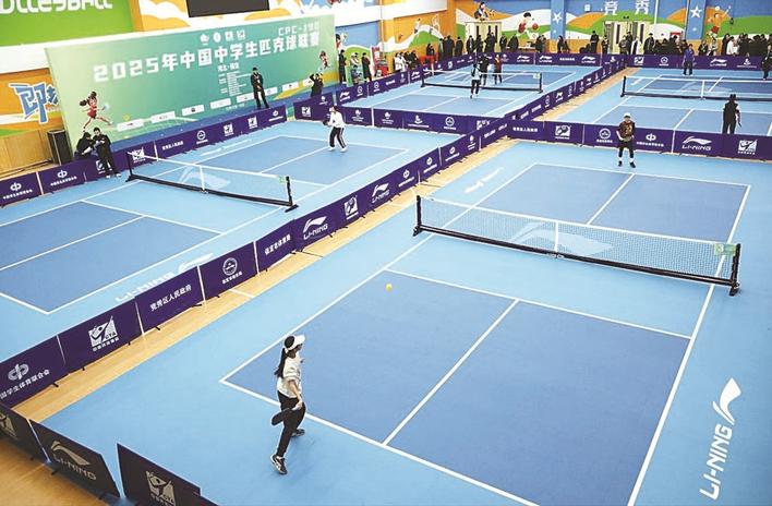 12月13日—14日,2025年中国中学生匹克球联赛在保定市竞秀中学举办,赛事设男子单打、女子单打、男子双打、女子双打、混合双打及不限性别双打共6个项目,分初中组、高中组、教师组3个组别进行。图为比赛现场。耿培轩 摄