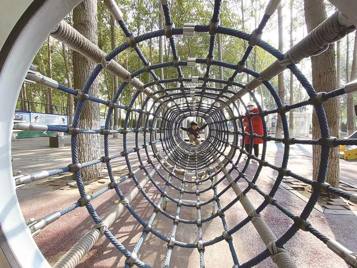本报讯(通讯员布雪娜 韩艳萍)在邯郸市邯山区南湖体育主题公园的智能健身区,老人们在漫步机上锻炼,孩子们在滑梯区嬉戏,一幅“全龄共享、其乐融融”的画卷徐徐展开。
