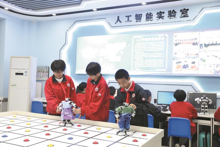 石家庄市第四十四中学开展科创综合实践活动。图为学生在人工智能实验室训练人工智能模型。张锋 摄