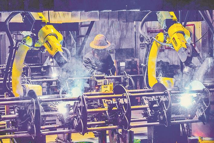 1月5日,工人在乐亭县经济开发区一家脚手架企业焊接车间工作。 新年伊始,各地企业铆足干劲赶订单、忙生产,力争首季“开门红”。新华社发(刘满仓 摄)
