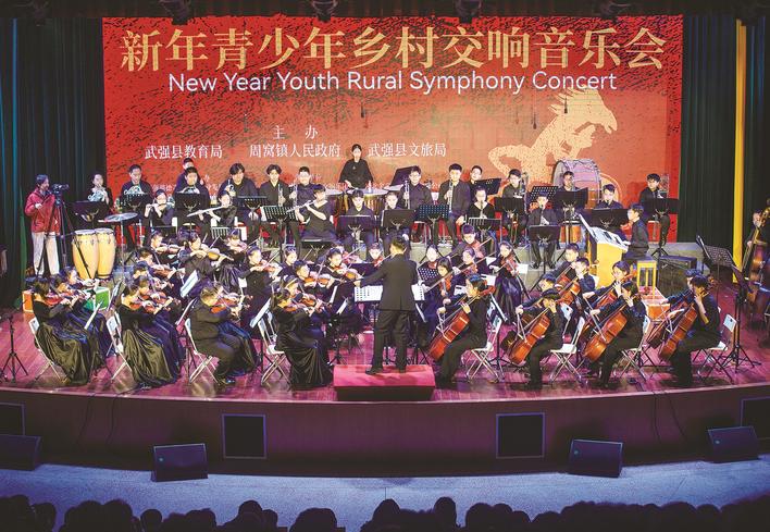 日前,2026新年青少年乡村交响音乐会在周窝音乐小镇精彩上演,活动邀请了山东省爱乐青少年交响乐团与武强县青少年校园乐团为大家共同带来了一场视听盛宴。图为音乐会现场。郭永杰 摄