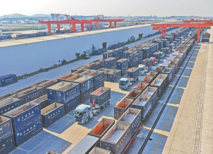 这是1月8日拍摄的南宁国际铁路港(无人机照片)。近日,记者从国铁南宁局获悉,2025年西部陆海新通道班列发运集装箱货物142.5万标箱,同比增长47.6%,首次实现年发运量突破百万标箱,再创历史新高。新华社记者 周华 摄